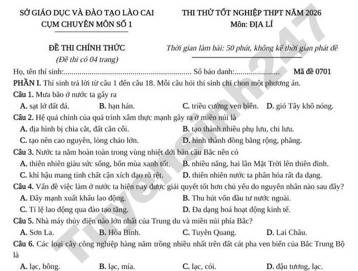 >>> Xem thêm lời giải chi tiết các đề thi thử Tốt nghiệp THPT 2026 môn Địa của các Sở GD, các trường THPT trên cả nước TẠI ĐÂY Theo TTHN 🔥 2K9 CHÚ Ý! LUYỆN THI TN THPT - ĐÁNH GIÁ NĂNG LỰC - ĐÁNH GIÁ TƯ DUY!