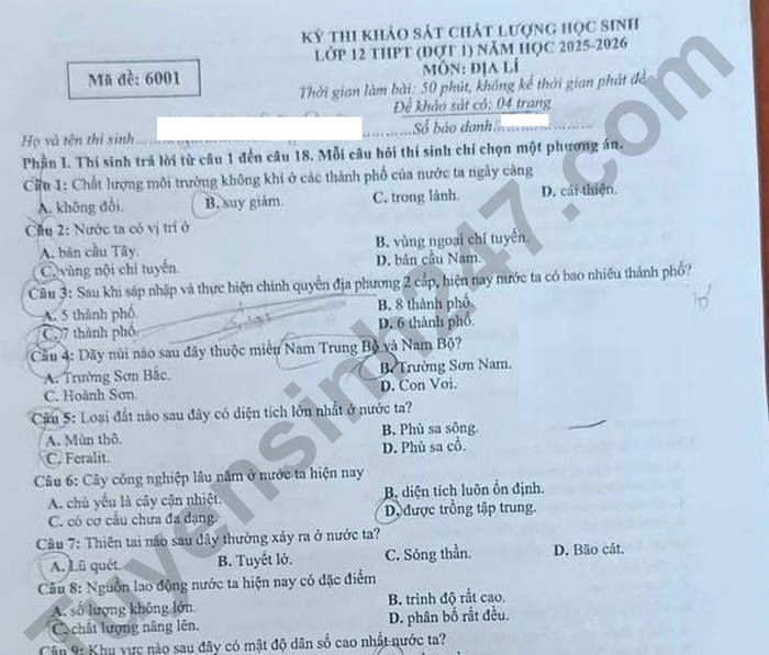 >>> Xem thêm lời giải chi tiết các đề thi thử Tốt nghiệp THPT 2026 môn Địa của các Sở GD, các trường THPT trên cả nước TẠI ĐÂY Theo TTHN 🔥 2K8 CHÚ Ý! LUYỆN THI TN THPT - ĐÁNH GIÁ NĂNG LỰC - ĐÁNH GIÁ TƯ DUY!