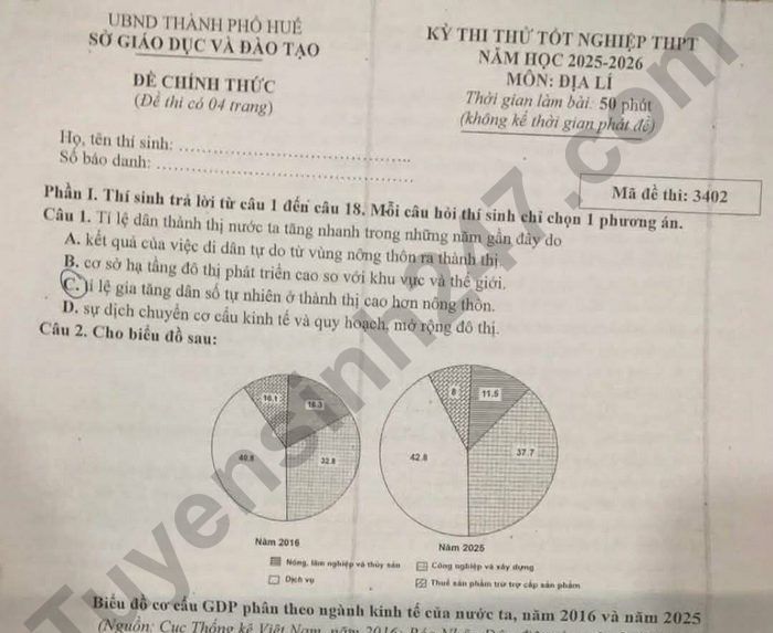 >>> Xem thêm lời giải chi tiết các đề thi thử Tốt nghiệp THPT 2026 môn Địa của các Sở GD, các trường THPT trên cả nước TẠI ĐÂY Theo TTHN 🔥 2K9 CHÚ Ý! LUYỆN THI TN THPT - ĐÁNH GIÁ NĂNG LỰC - ĐÁNH GIÁ TƯ DUY!