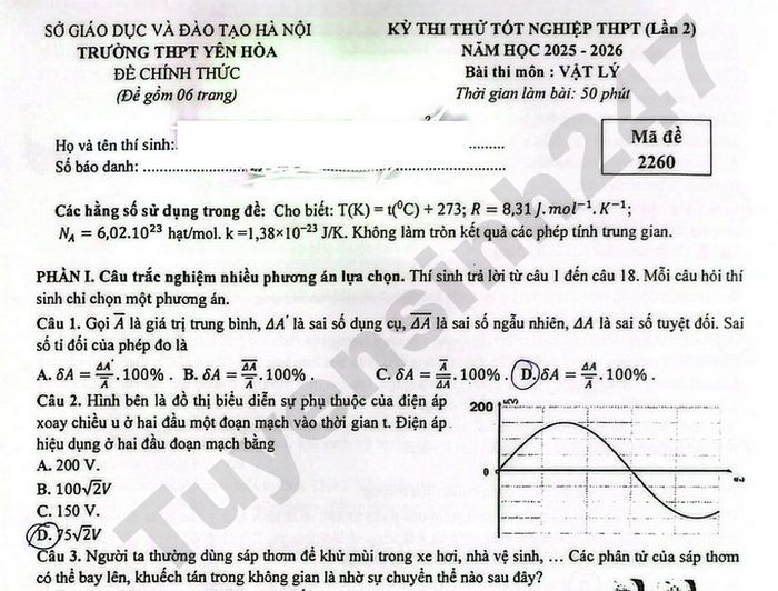 >>> Xem thêm lời giải chi tiết các đề thi thử Tốt nghiệp THPT 2026 môn Lý của các Sở GD, các trường THPT trên cả nước TẠI ĐÂY Theo TTHN 🔥 2K9 CHÚ Ý! LUYỆN THI TN THPT - ĐÁNH GIÁ NĂNG LỰC - ĐÁNH GIÁ TƯ DUY!