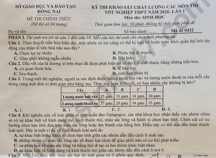 >>> Xem thêm lời giải chi tiết các đề thi thử Tốt nghiệp THPT 2026 môn Sinh của các Sở GD, các trường THPT trên cả nước TẠI ĐÂY Theo TTHN 🔥 2K9 CHÚ Ý! LUYỆN THI TN THPT - ĐÁNH GIÁ NĂNG LỰC - ĐÁNH GIÁ TƯ DUY!
