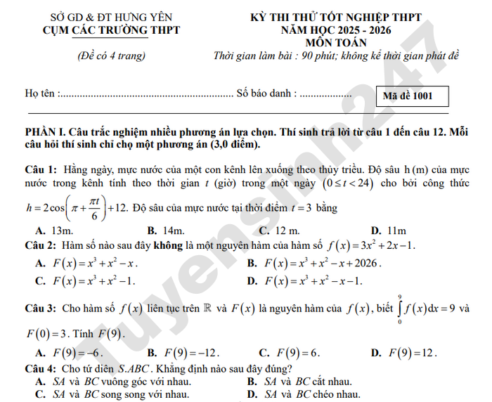 >>> Xem thêm lời giải chi tiết các đề thi thử Tốt nghiệp THPT 2026 môn Toán của các Sở GD, các trường THPT trên cả nước TẠI ĐÂY Theo TTHN 🔥 2K9 CHÚ Ý! LUYỆN THI TN THPT - ĐÁNH GIÁ NĂNG LỰC - ĐÁNH GIÁ TƯ DUY!