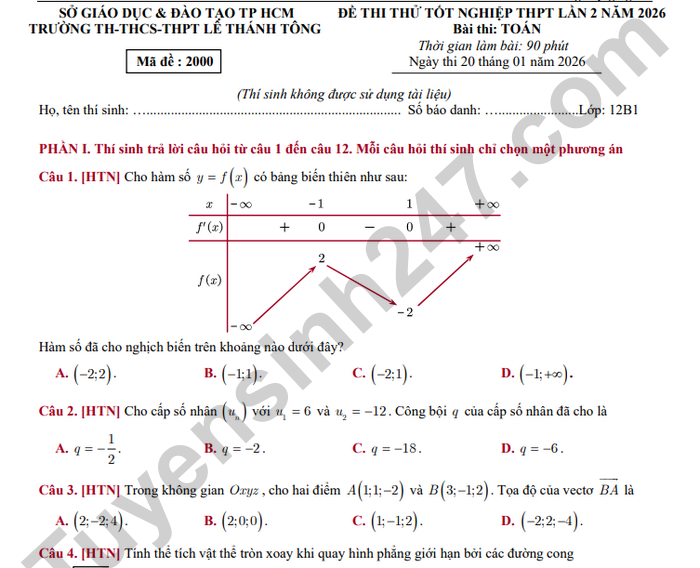 >>> Xem thêm lời giải chi tiết các đề thi thử Tốt nghiệp THPT 2026 môn Toán của các Sở GD, các trường THPT trên cả nước TẠI ĐÂY Theo TTHN 🔥 2K8 CHÚ Ý! LUYỆN THI TN THPT - ĐÁNH GIÁ NĂNG LỰC - ĐÁNH GIÁ TƯ DUY!