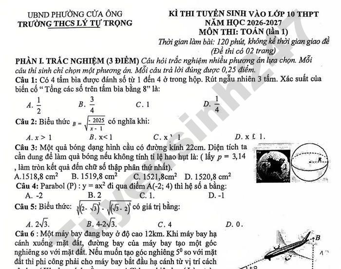 Đề thi thử vào lớp 10 môn Toán 2026 - THCS Lý Tự Trọng lần 1 Câu 5 (1,0 điểm): Giải bài toán bằng cách lập phương trình hoặc hệ phương trình Nhằm phục vụ khán giả cổ vũ giải bóng đá, một xưởng may phải may 2000 áo cổ động viên trong một số ngày quy định. Trong ba ngày đầu, mỗi ngày xưởng may đúng số áo theo kế hoạch. Từ ngày thứ tư, nhờ cải tiến kỹ thuật, mỗi ngày xưởng may được nhiều hơn 30 áo so với số áo phải may trong một ngày theo kế hoạch. Vì thế, trước khi hết thời hạn 1 ngày, xưởng đã may được 1980 áo. Hỏi theo kế hoạch, mỗi ngày xưởng may được bao nhiêu áo ?