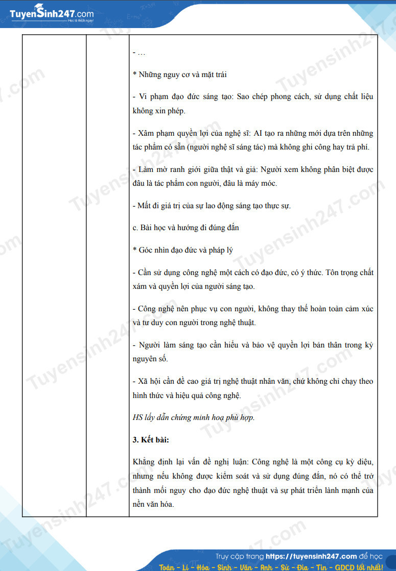Đáp án đề thi vào lớp 10 môn Văn không chuyên - Phổ thông năng khiếu HCM 2025