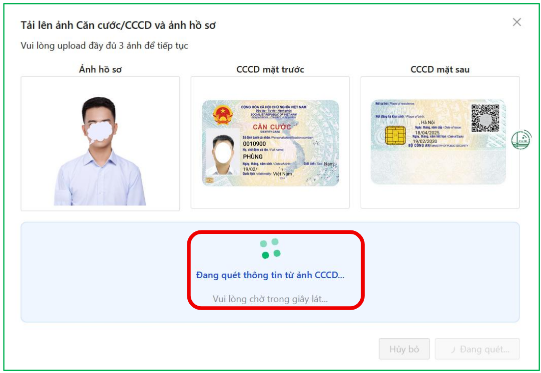 Hình 12. Tải lần lượt hình ảnh Căn cước/CCCD và ảnh hồ sơ