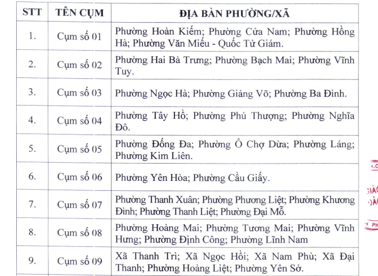 Danh sách các cụm chuyên môn theo địa bàn các cấp học mầm non, tiểu học, THCS tại Hà Nội năm học 2025 - 2026 như sau: